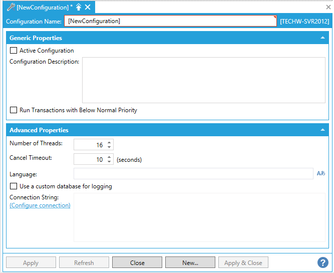 Once you have finished setting your properties, you can click Apply to save your configuration and Close to return to the Workbench. Your new Transaction Configuration will now appear in the Project Explorer, beneath the Transactions node.