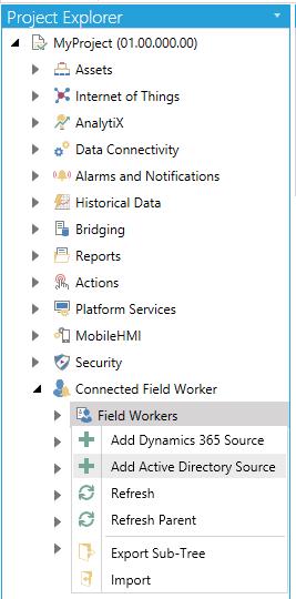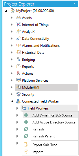 Right-click on the Field Workers branch, then select Add Dynamics 365 Source from the pulldown menu, as shown below.