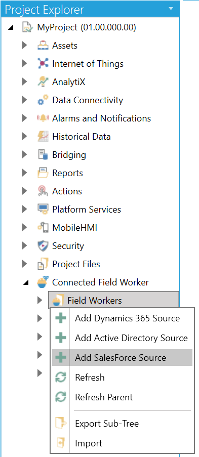 Right-click on the Field Workers branch, then select Add Salesforce Source from the pulldown menu, as shown below.
