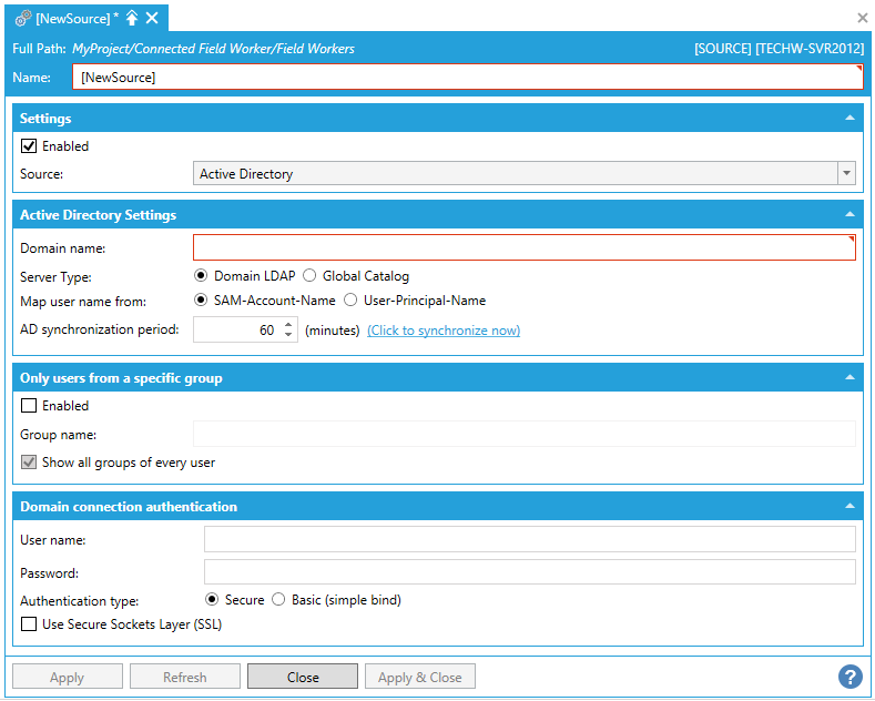 Field Workers -Active Directory Source Configuration