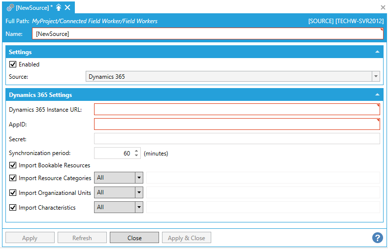 Field Workers - Dynamics 365 Source Configuration