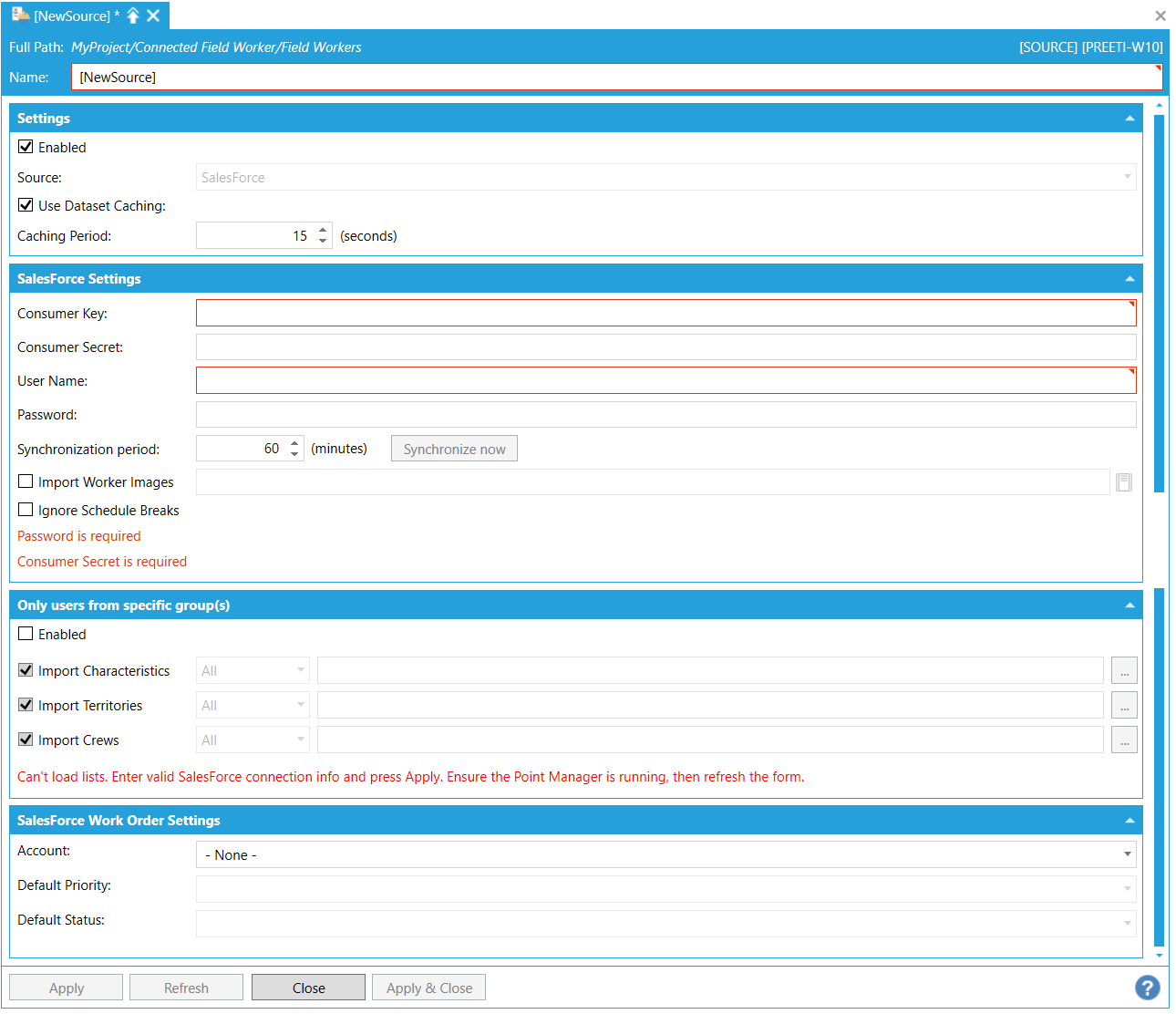 Field Workers - Salesforce Source Configuration