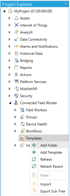 Right-click on the Templates branch, then select Add Folder from the pulldown menu, as shown below.