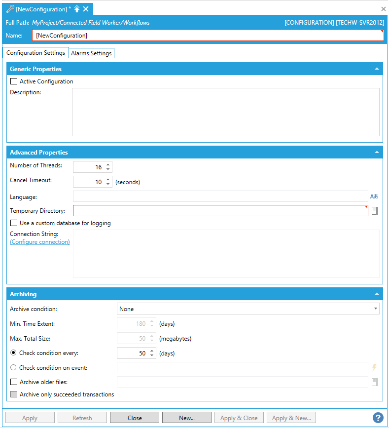 Temporary Directory - Enter a temporary directory for the workflow configuration in the text entry field or click on the