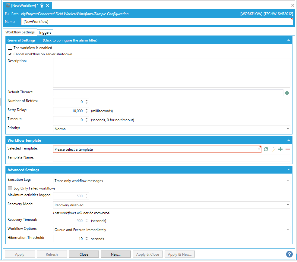 Once you have completed your configuration, click on Apply and then Close to return to the Workbench. Your new Workflow configuration will now appear in the Project Explorer.