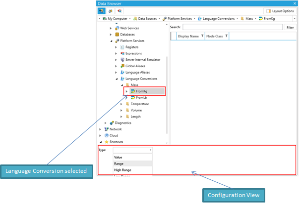 The configuration view within the Data Browser in the Workbench provides a section with specific options to configure: