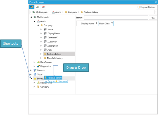 The Data Browser in the Workbench allows for shortcuts, which allow for the possibility to store a selected item and its subtree in the Shortcuts subtree. This can be accomplished:
