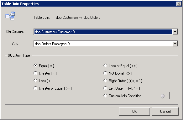 Custom SQL Join Condition Dialog Box