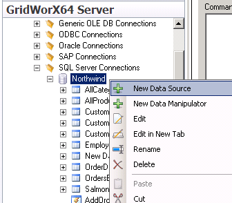 GridWorX64 Server Data Source Name with Select Command