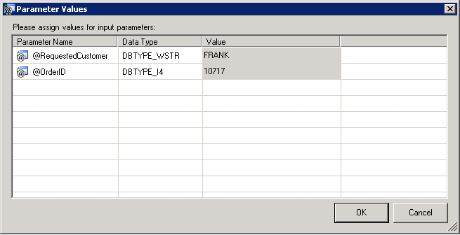 Parameter Values Dialog Box with Requested Values