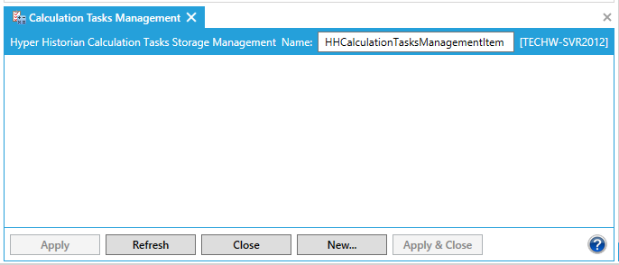 Note. Tasks are stored in a text file that you can update manually or by using an automated process; you are not required to use the Hyper Historian form provided for you in the GENESIS64 Workbench. For more information, refer to the Calculation Tasks File section at the end of this topic. |