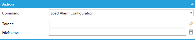 Load Alarm Configuration: The Load Alarm Configuration command opens an AlarmWorX file of alarms inside an AlarmWorX Viewer when a runtime user selects the menu option.