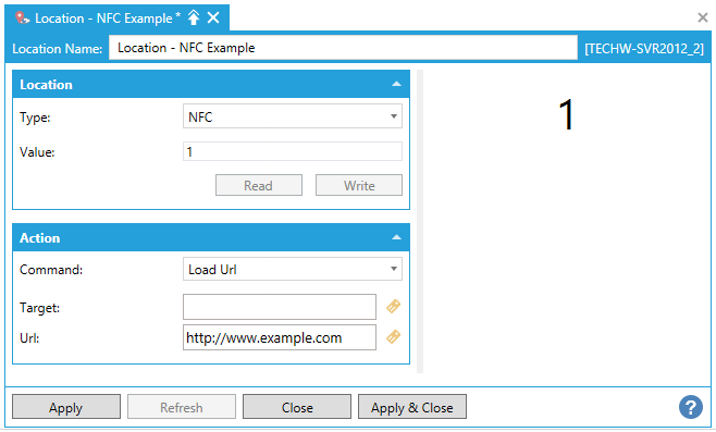 Note: Just for convenience, when you already have an NFC tags with an NDEF string value, clicking the Read button reads the value from the tag and fills the Value field for you. The Write button is there, again for convenience, and works the other way around. It allows you to write the value to the tag. To enable both buttons, you will need at least Microsoft Windows 8.1 (or newer operating system), as well as supported hardware and properly installed drivers. Some laptops come with NFC readers built in. Otherwise, you will need a USB reader/writer. The buttons will be enabled once you connect the reader to the PC and install the drivers.