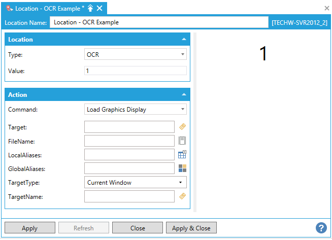 For each Type you choose from, there are multiple Commands that can be configured independently within the Action dialog. From the Command drop-down menu within the Actions menu, the user can choose from a variety of specific options to configure their selected Augmented Reality Type. Commands within this dialog include; Load Alarm Configuration, Select Asset, Set Global Aliases, and many more. Click on a command to open its specific menu and edit it.