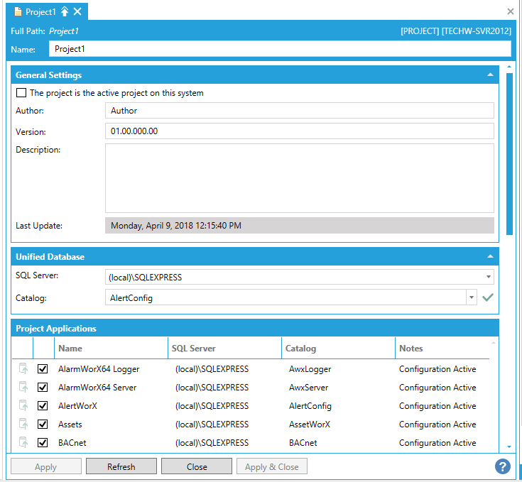 The project is the active project on this system - This may be automatically checked if you are editing the initial default project. As you create additional projects, you can use this checkbox to designate the active project on a specific system.