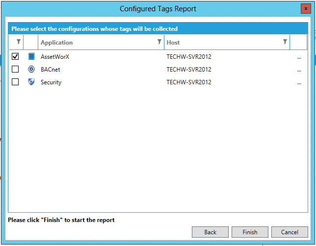Configured Tags Report Wizard First Screen