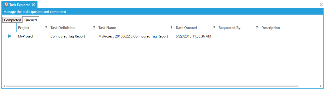Task Explorer Containing Queued Configured Tag Report Task