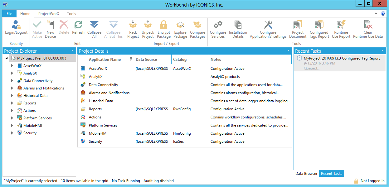 Report Status Listed in the Recent Tasks Panel in the Workbench