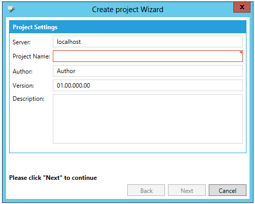Create project Wizard Window - Screen 1