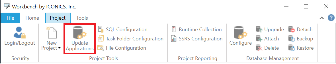Update Applications Button in the Project Tools Section of the Project Ribbon in the Workbench