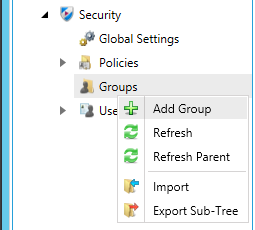 Select the Groups node then click on the Add Group button in the Edit section of the Home ribbon in the Workbench, shown below.