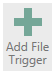 Select the File Triggers node then click on the Add File Trigger button, shown below, in the Edit section of the Home ribbon in the Workbench.