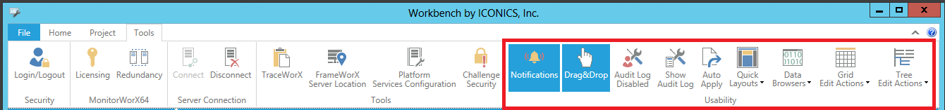 Usability Section of the Tools Ribbon in the Workbench