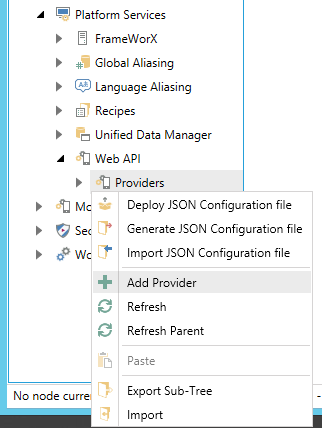 Right-click on the Providers node, then click on Add Provider, as shown below.