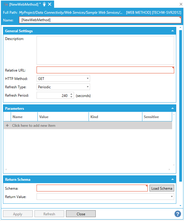 Schema - Click on the Load Schema button to the right to autofill the field depending on the completed General Settings for the Web Method.