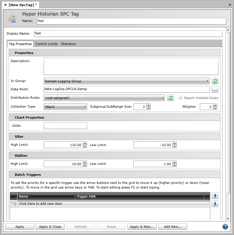 Select a Collection Type of XBarS to summarize the sample values that this SPC tag measures.