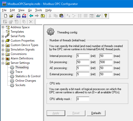 Modbus OPC Server utilizes advanced threading capability of the Modbus Server.
