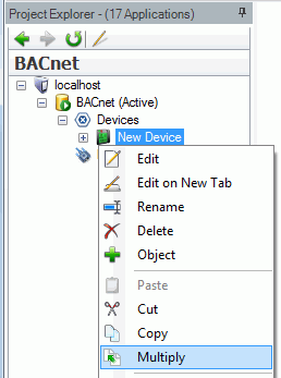 Devices, ports, objects and properties can be multiplied within the BACnet Connector Provider in the Workbench32 configuration/runtime tool.