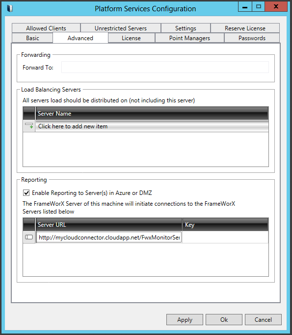 1. In the Platform Services Configuration's Advanced tab, if you had set your Server Role in the Server Configuration section as "Forwarding", you can enter the forwarding IP address in the "Forward To:" text entry field.