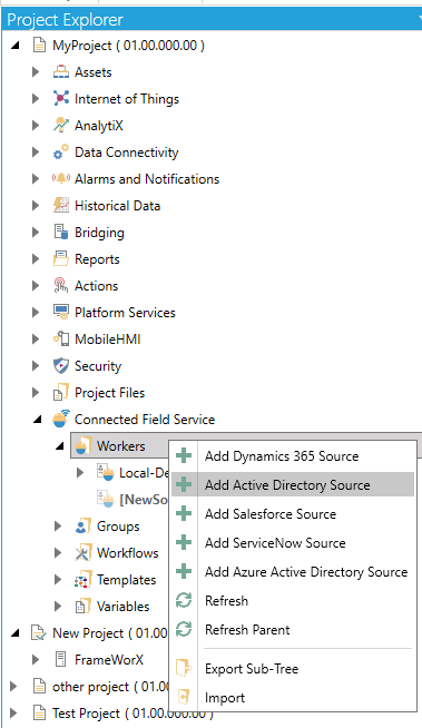 Right-click on the Workers branch, then select Add Azure Active Directory Source from the pulldown menu, as shown below.