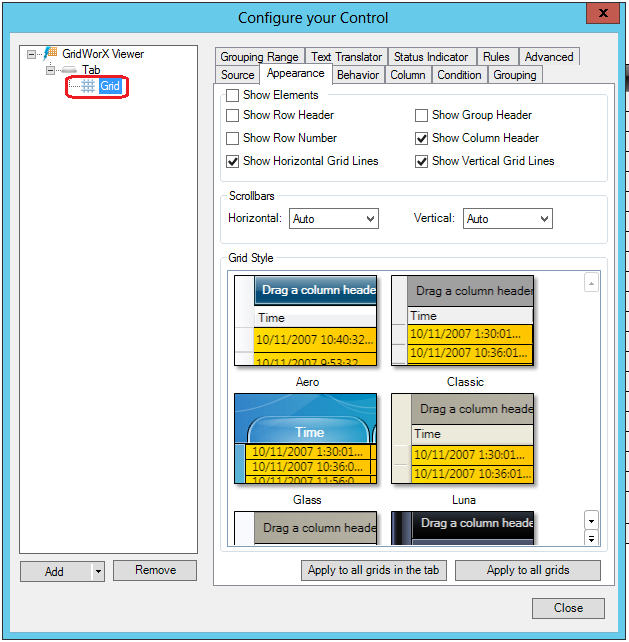 Appearance Tab for Grids