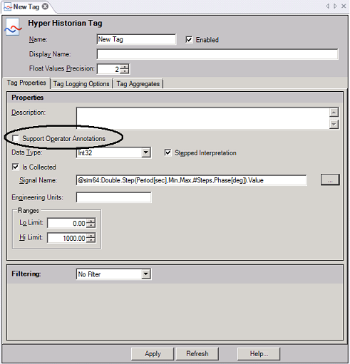 - If you want the ability to add comments to the Hyper Historian tag while viewing it in the Trend Viewer, check the option to 'Support Operator Annotations'.