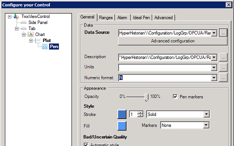 - Click the Configure button on the ribbon's TrendWorX64 Viewer Configuration tab to open the Configure Your Control dialog.