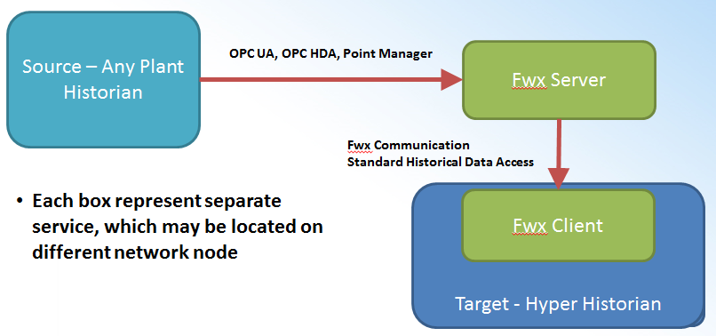 The following image illustrates Basic data flow in Hyper Historian.