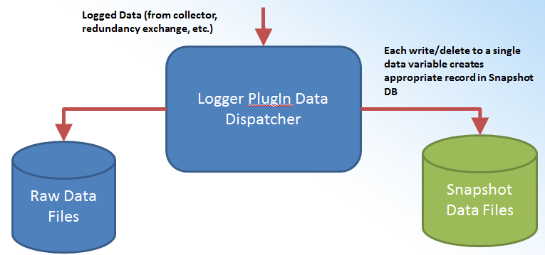 Snapshot processing involves a snapshot database (standard Hyper Historian Logger [file logger]). This contains data for synchronization purposes only. The processing involves short-term, persistent storage (one day, one week), and doesn't require archiving. The snapshot data is available as a property data variable on a source (raw) data variable. Group-level settings are optional.