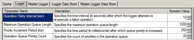 - Operation Retry Interval (sec) specifies the time interval, in seconds, before the logger re-tries a failed operation again.