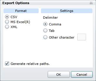 Enable the Generate Relative paths check box if it is important to maintain the relative paths of items in the exported file.