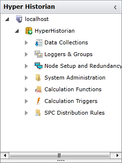 - Take a look at the Data Collections tree node. Note that Hyper Historian pre-configures several folders in the sample configuration database by default.