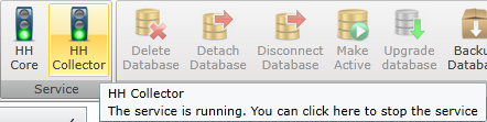 - When you are done configuring your tags, start the HH Core and HH Collector services by clicking on the traffic lights in the Service section of the Home ribbon so that they both become green.