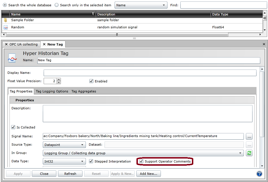 - If you want the ability to add comments to the Hyper Historian tag while viewing it in the Trend Viewer, check the option to Support Operator Comments.