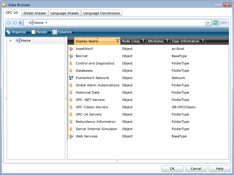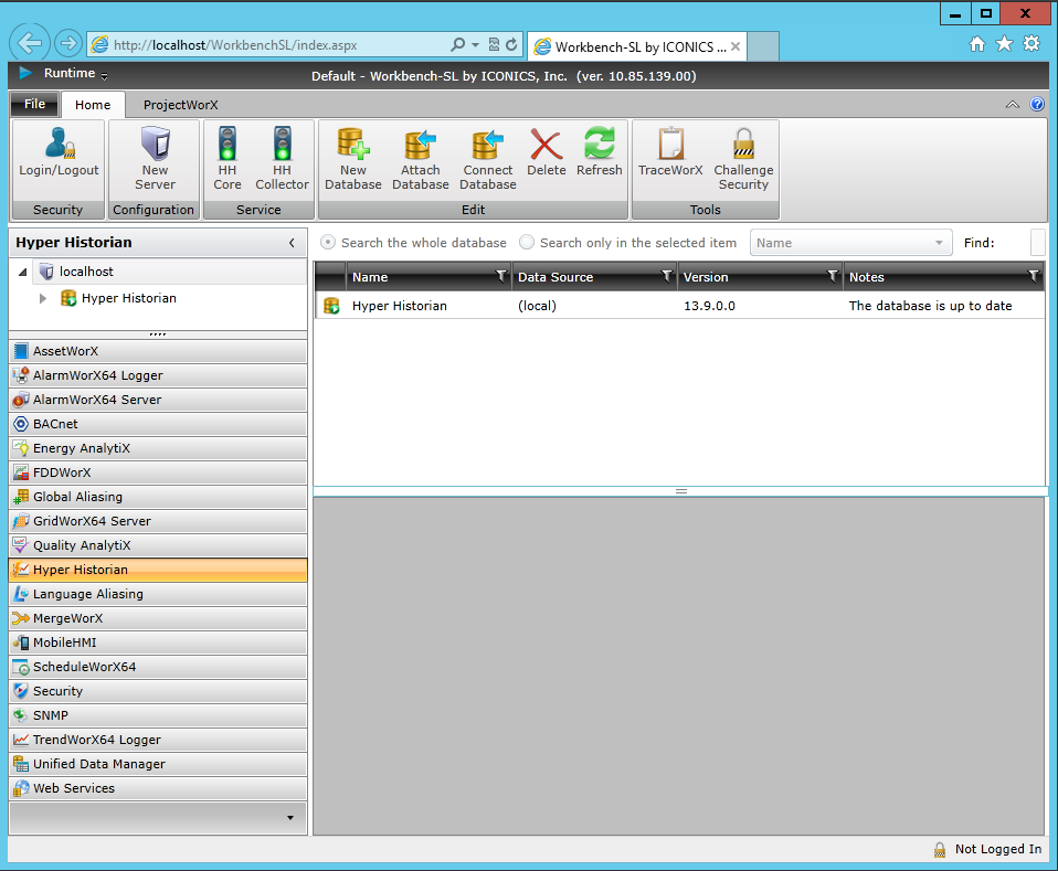 Note: If you see nothing in the Navigation Tree after selecting Hyper Historian, it is possible that your security level blocked it. In this case, select the Log In/Log Out button on the Home ribbon to bring up the security login dialog to log in as a user with permissions.