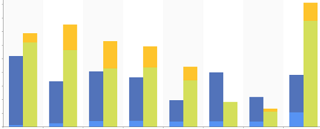The figure below is the same four series, except all set with a CombineMode of Cluster.