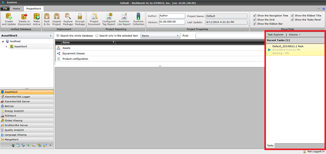 the Workbench then begins to process the packaged project. You can see the status of the project in the Task Panel in the right side of the Workbench, as shown below.