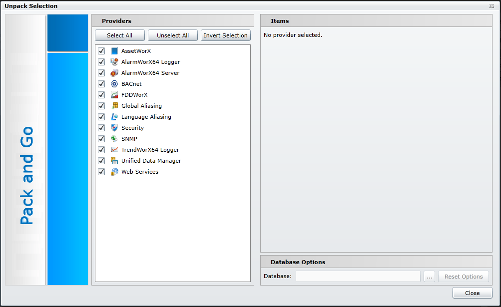 You can also select individual Providers and then select specific Items in the section to the right. The Items section is set up to mimic each Provider's Tree Explorer, allowing you to expand branches/nodes in order to select certain items for inclusion in the packed project.