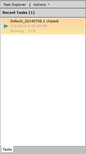 The Tasks Panel will then show the status of the unpacking, as shown below.
