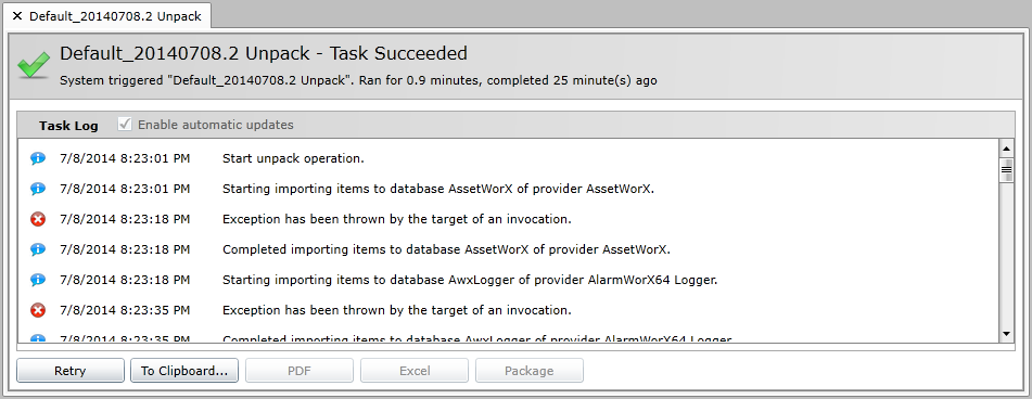 Unpack Task Log